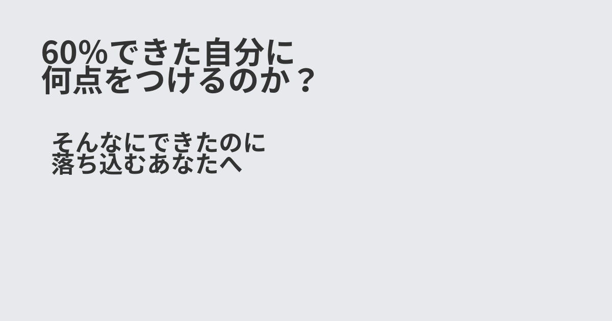 今日は「6割できた日、僕は何点をつけるのか」という話をしてみます。